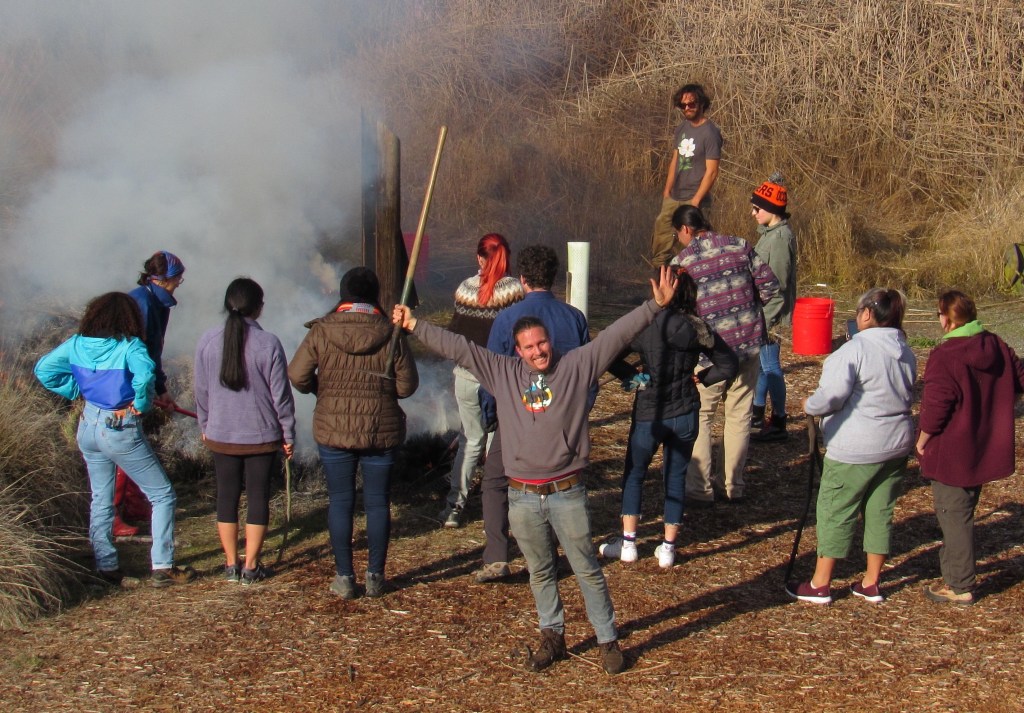 Assisting with grassland burn at Indigenous Fire Workshop in Mariposa, CA